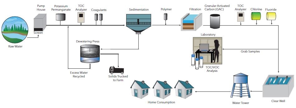 Water purification water treatment involves various components e g processes chemicals equipment and operations required to remove microbial chemical and physical contaminants and to produce drinking water that complies with regulations or guidelines for human consumption.